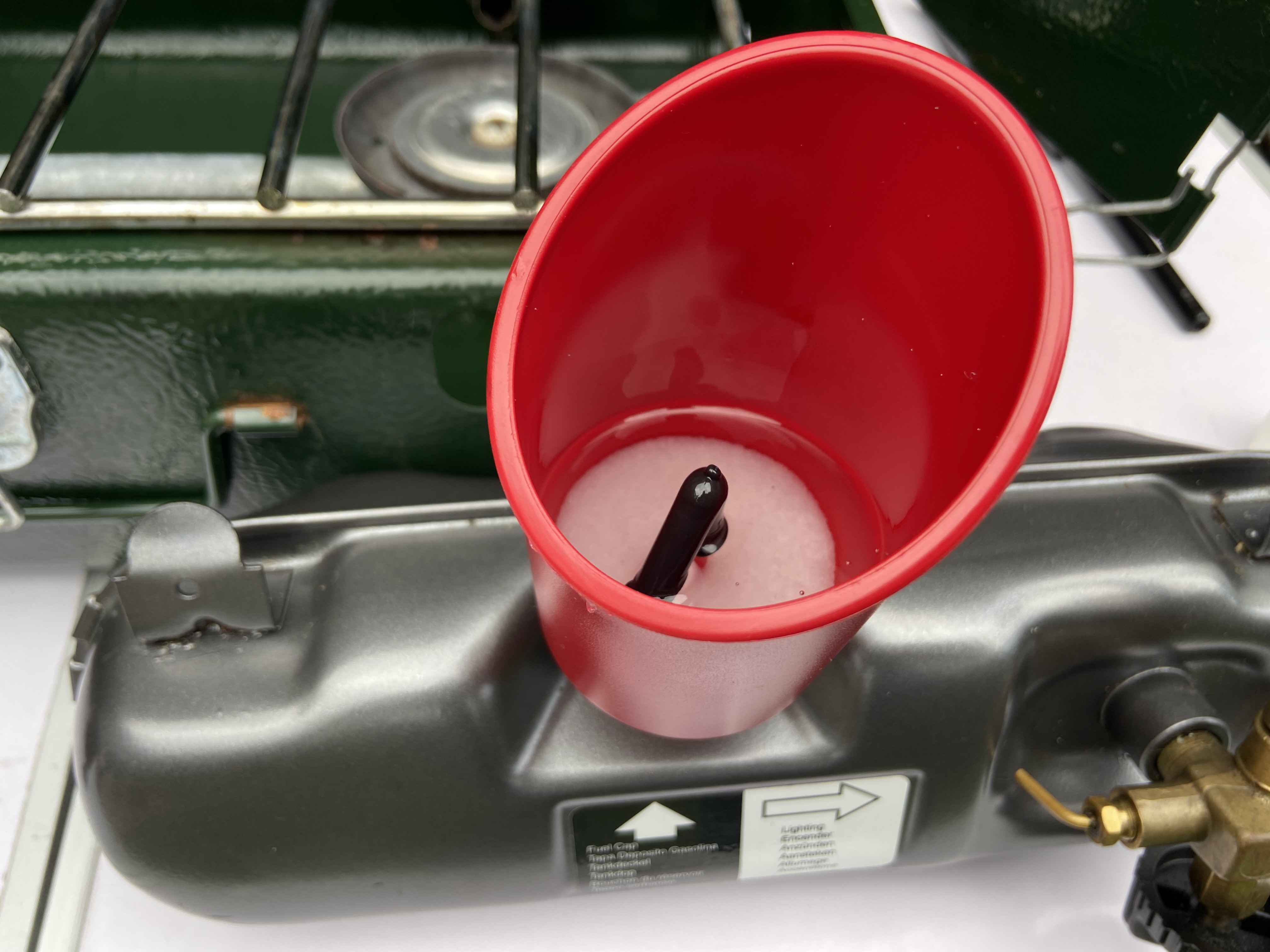 Stap 2 Vul via de trechter de tank tot de Coleman Fuel niet meer doorloopt in de trechter. |