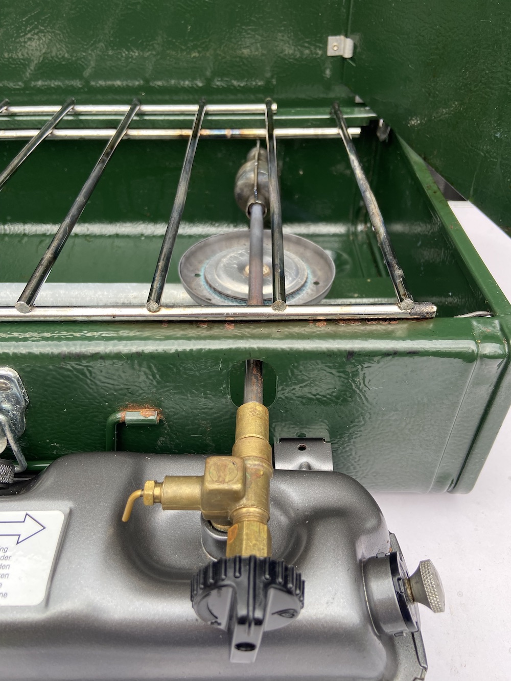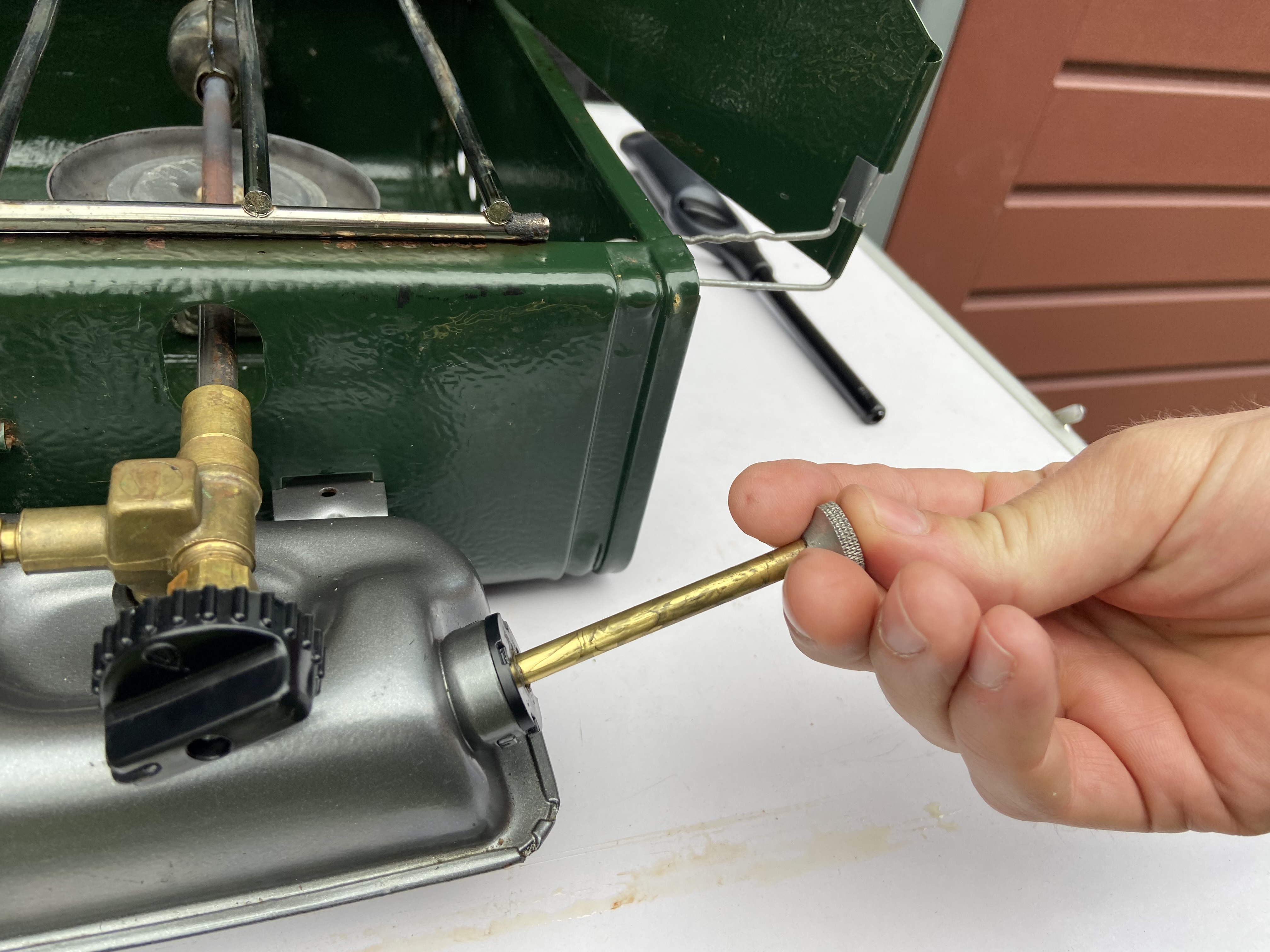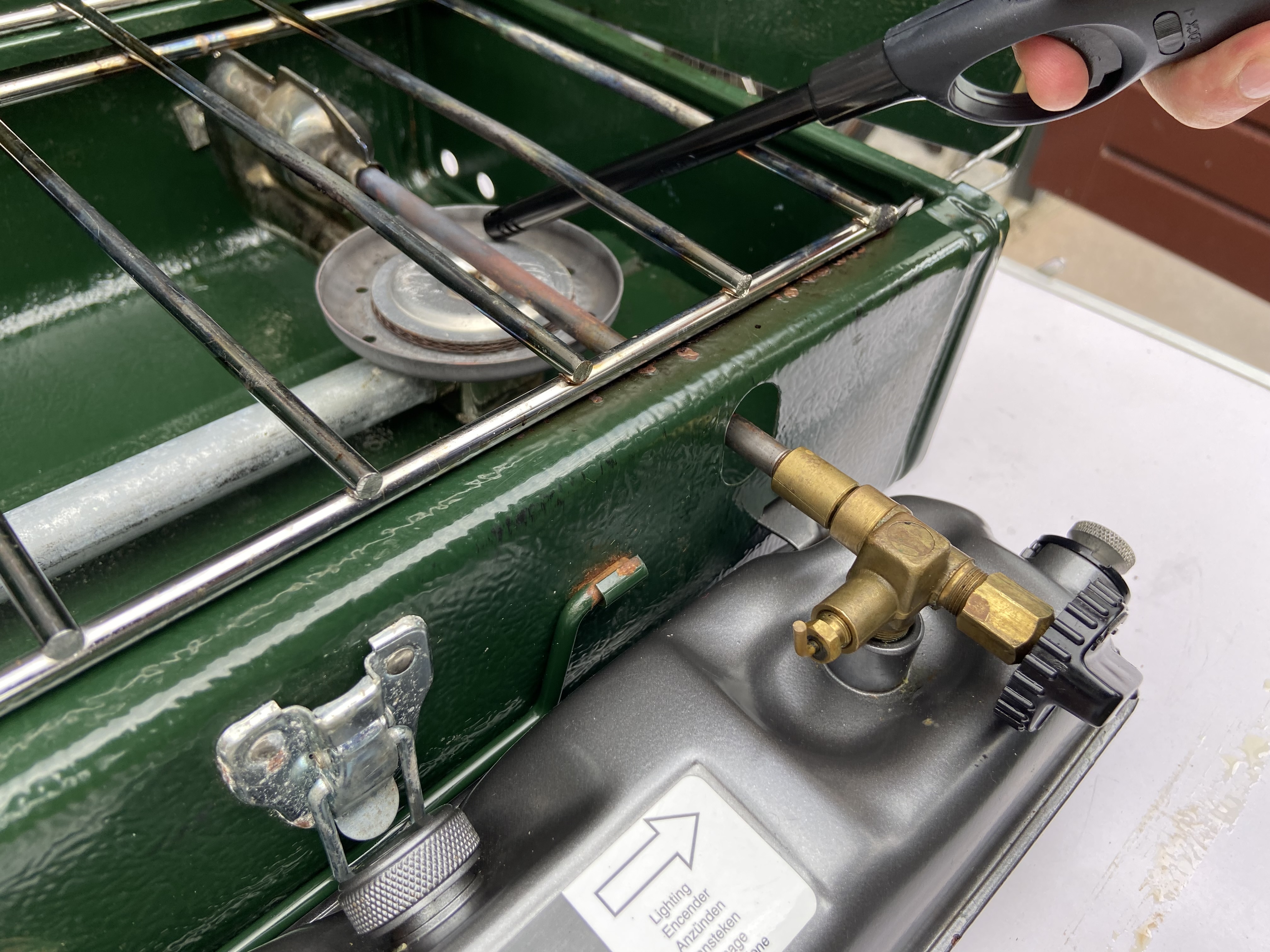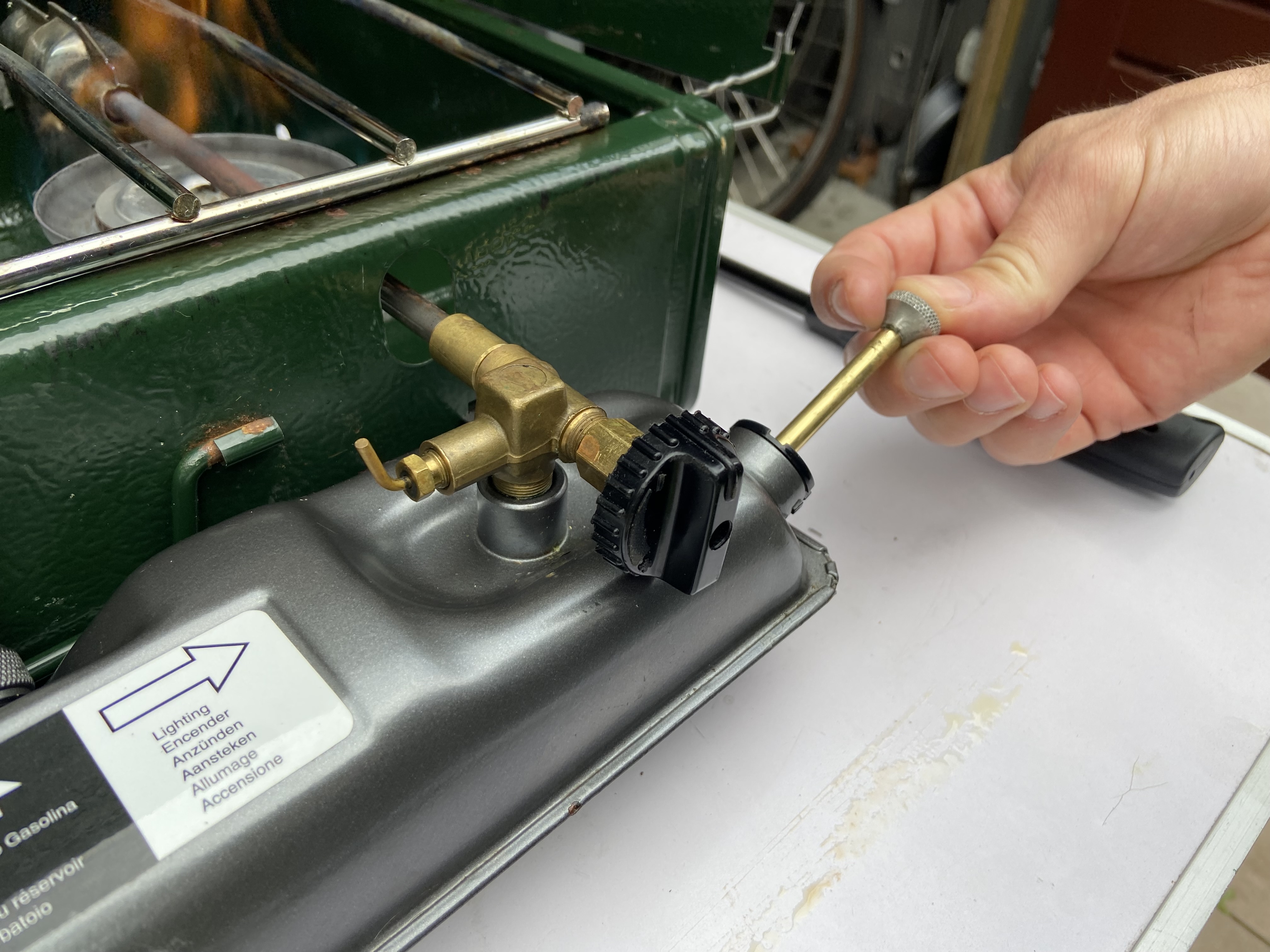 Stap 10 2 minuten overleeft? Dan mag nu de chokehendel naar beneden. Draai de kraan open op de gewenste stand. Nog gele vlammen? Dan wederom pompen tot je een forse tegendruk voelt. |