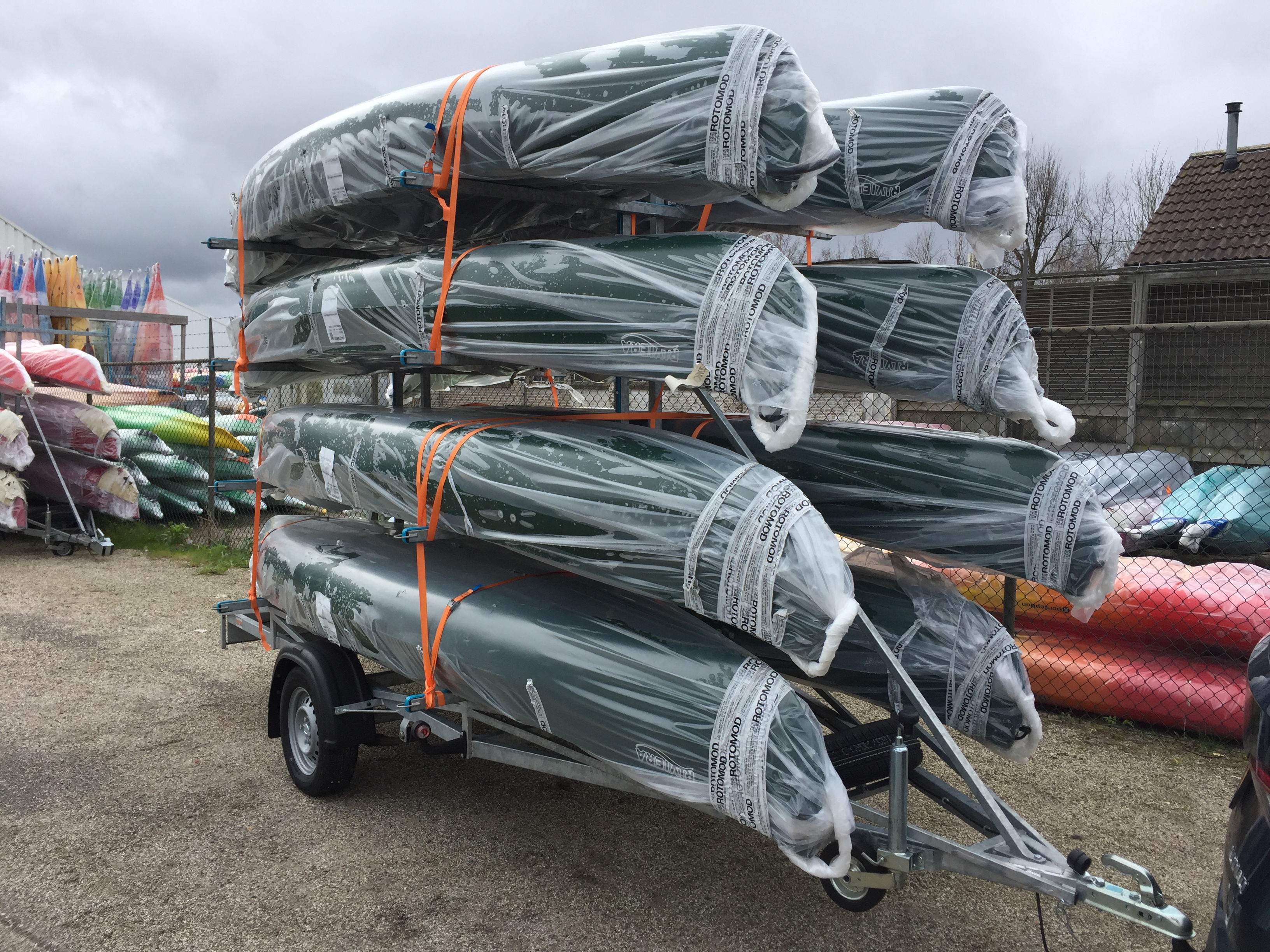 De kano's zijn opgehaald in Wormer. Zoals je kunt zien helemaal nog verpakt in het plastic. We hopen dat de leden van Scouting Den Hoorn veel plezier gaan beleven aan deze kano's.